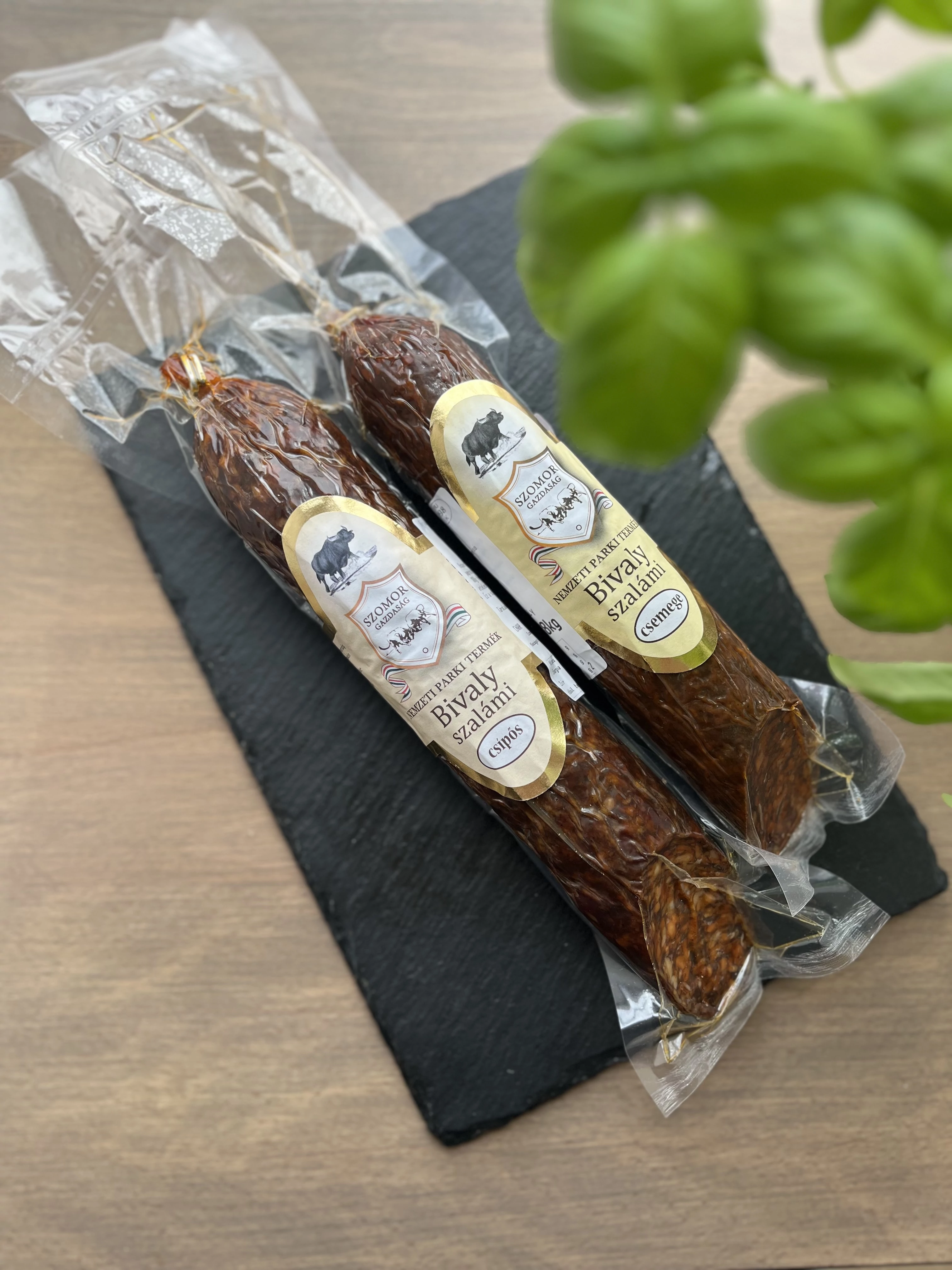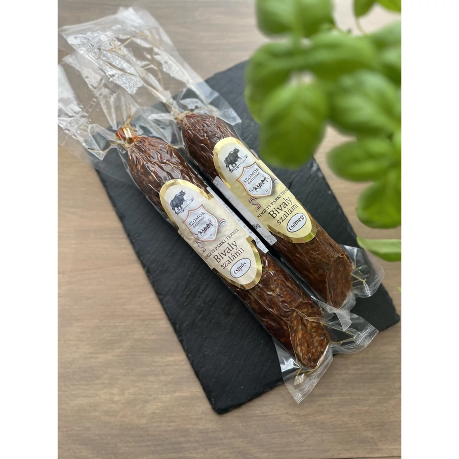 Szürkemarha szalámi. Csemege és csipős változatban is kapható. 0,35 kg körüli kiszerelésben kapható.